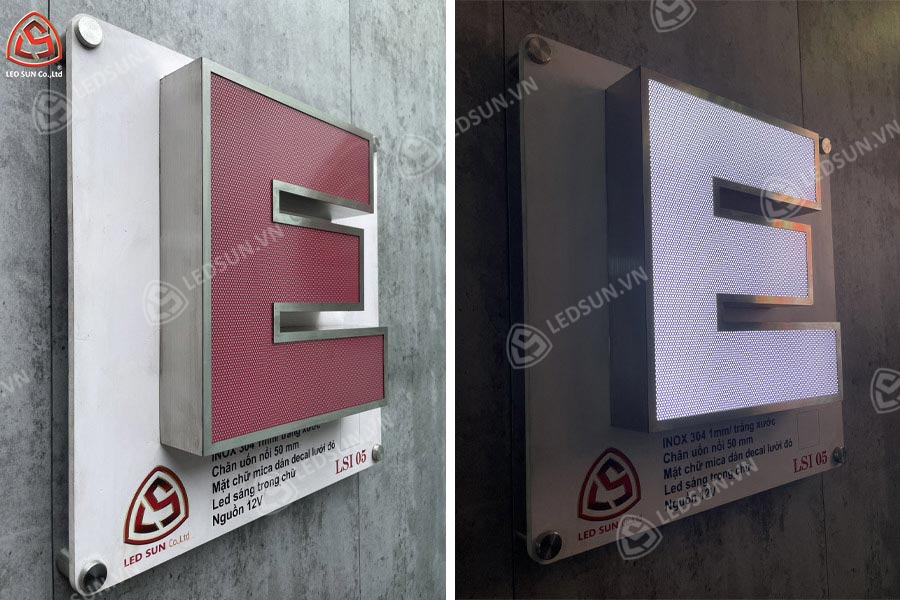 Chữ nổi inox trắng xước mặt mica dán decal lưới là loại chữ nổi được làm từ inox trắng xước, kết hợp với một lớp mica ở mặt trước. Trên bề mặt mica được dán thêm decal lưới, một loại decal có các lỗ nhỏ li ti, giúp tạo hiệu ứng xuyên sáng độc đáo. Khi kết hợp với hệ thống đèn LED bên trong, ánh sáng sẽ hắt qua các lỗ trên decal, tạo hiệu ứng ánh sáng mềm mại và thu hút. Loại chữ này thường được sử dụng trong các bảng hiệu, logo quảng cáo, đặc biệt là tại các cửa hàng, showroom, nơi cần sự nổi bật và thẩm mỹ hiện đại.