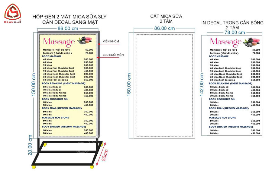 Hộp đèn không chỉ là một giải pháp chiếu sáng, mà còn là một điểm nhấn nổi bật giúp thương hiệu của bạn tỏa sáng giữa đám đông. Tại Led Sun, chúng tôi tự hào giới thiệu bộ sưu tập thiết kế hộp đèn đa dạng, sáng tạo và đầy ấn tượng. Từ hộp đèn menu LED hiện đại, hộp đèn logo độc đáo đến các mẫu hộp đèn CNC tinh tế, mỗi sản phẩm đều mang đậm dấu ấn thiết kế chuyên nghiệp, đảm bảo vừa thẩm mỹ vừa chất lượng. Cùng khám phá những mẫu hộp đèn đặc sắc của chúng tôi để tìm ra giải pháp hoàn hảo cho không gian và nhu cầu quảng bá của bạn!